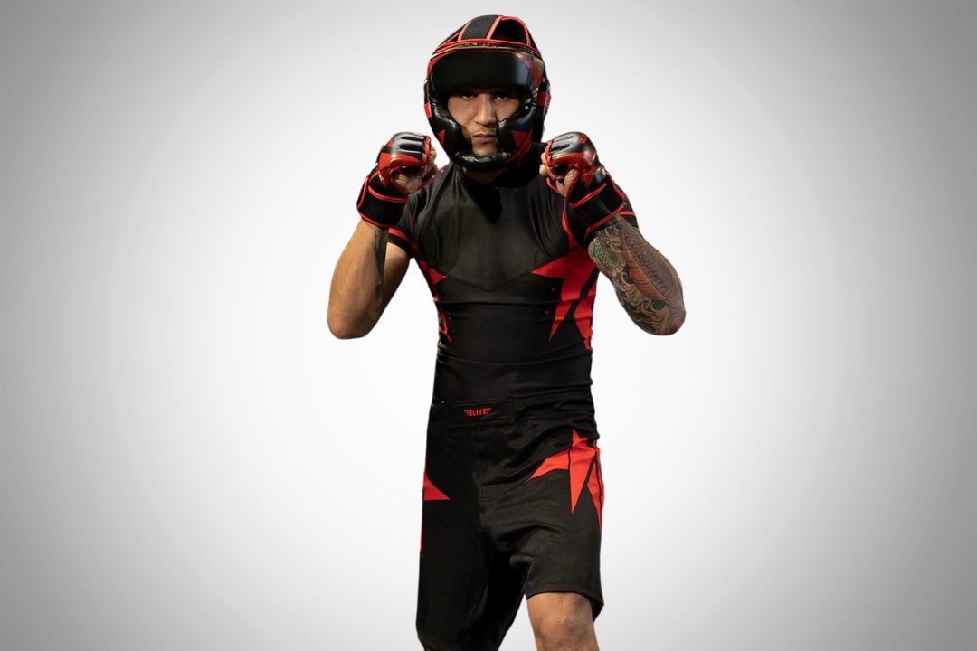 Combat-ready kits including rash guards and shorts made for agility, toughness, and flexibility, customized for gyms and fight clubs.